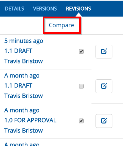 You can compare model revisions with each other by selecting the models you want to compare and clicking the 'Compare' button.
