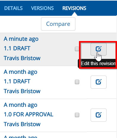 You have the option to also edit any of the revisions of the process model.