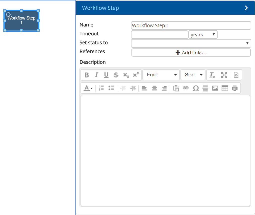 When a Workflow Step has been added, the properties inspector will show what can be changed or added to this step.