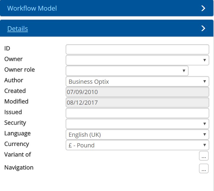 By clicking on the model, the author can add details regarding the model as a whole which are displayed below.