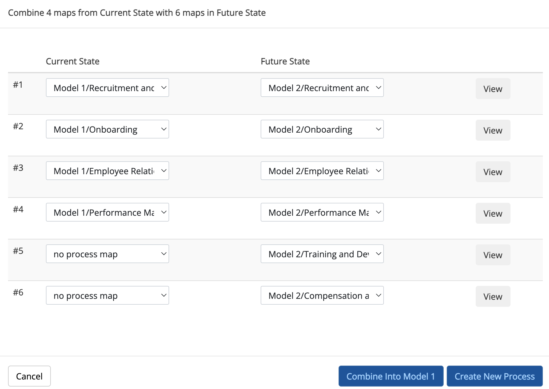 When you have selected Combine you are then asked to confirm the second process model you wish to Combine, and this will become your future state process model.