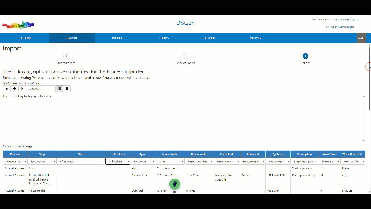 As an Author, you sometimes have to capture the high-level details of a process in tools other than BusinessOptix, for example, Excel.