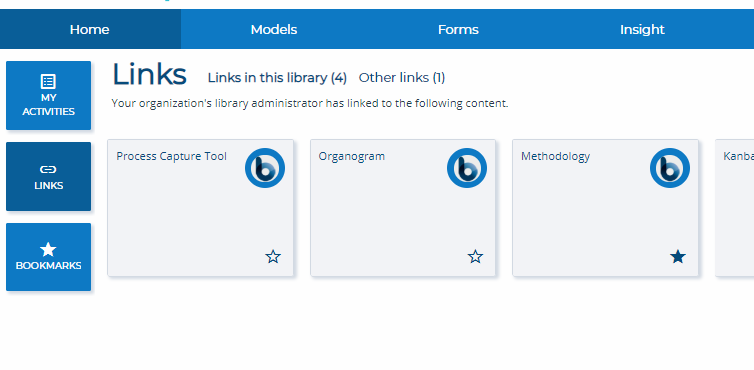 Models - Process models, work instructions, organization charts and master data in your library. Models may be filtered to search easily.