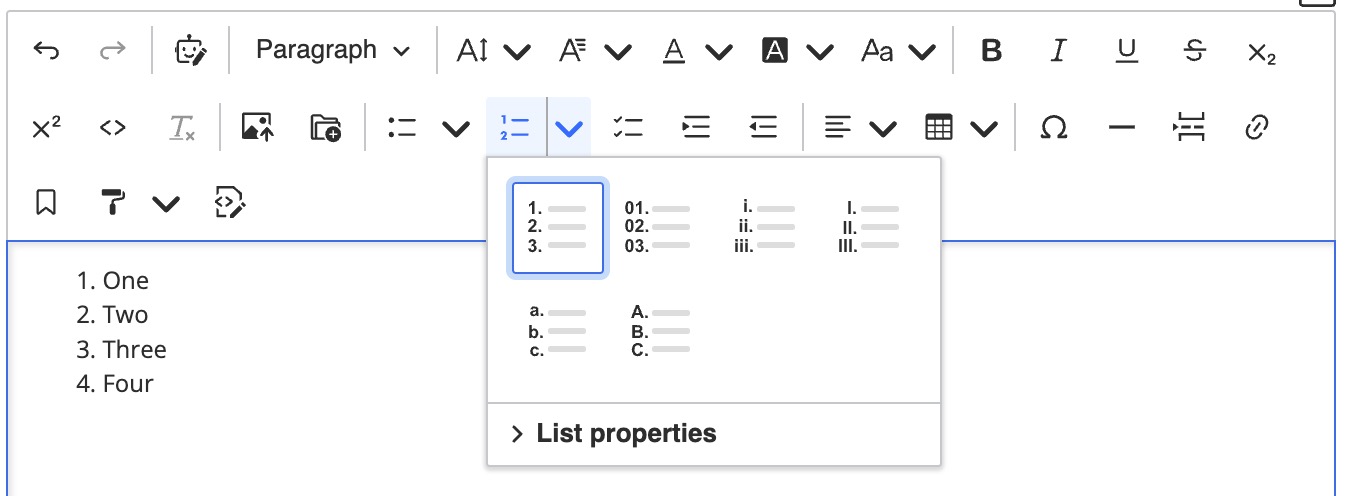 Right click previously available when editing rich text is no longer an available option. Where this was previously used to create a custom paste function, this is now supported by using the default browser paste functionality on right click. Image formatting is now available from a menu that displays when you hover over the image. If you had a list (bullets or numbered list) a right click allowed you to change the formatting. The list menu items now support changing the formatting.